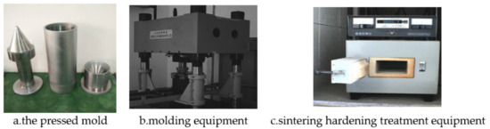 Molding equipment (a,b) and sinter hardening treatment equipment (c).