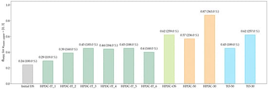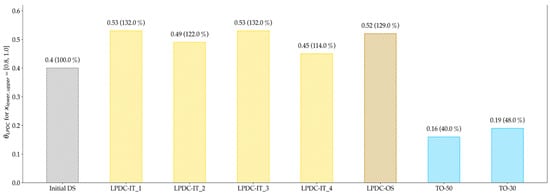 The LPDC-IT optimization reached the termination criterion after four iterations, as shown in Figure 15. As for the HPDC-IT results, each iteration is displayed separately to visualize the iterative progress of the optimization procedure.