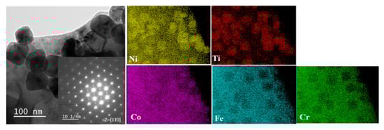 - Han, B.; Wei, J.; Tong, Y.; Chen, D.; Zhao, Y.L.; Wang, J.; He, F.; Yang, T.; Zhao, C.; Shimizu, Y.; et al. Composition evolution of gamma prime nanoparticles in the Ti-doped CoFeCrNi high entropy alloy. Scr. Mater. 2018, 148, 42–46. [Google Scholar] [CrossRef]