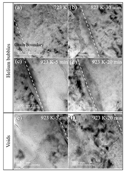 - Chernikov, V.N.; Trinkaus, H.; Ullmaier, H. Helium bubbles in nickel annealed at T > 0.7 T(m). J. Nucl. Mater. 1997, 250, 103–110. [Google Scholar] [CrossRef]