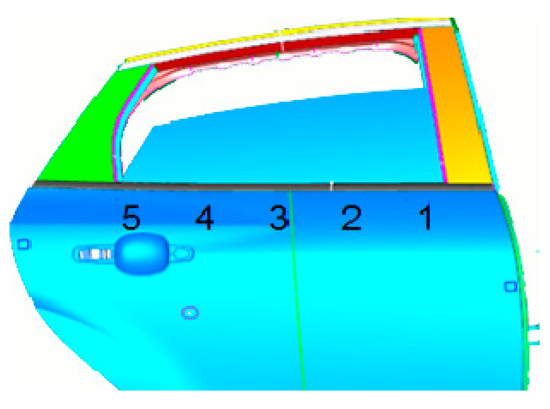 X1.1 represents the width of the automobile window, and X1.2 represents the distance between the window glass and the sheet metal panel in the door, as shown in Figure 11. The letter box of the door of a certain is measured, and the measured points are shown in Figure 12. Measure points 1 to 5 to determine whether X1 meets the production standard.