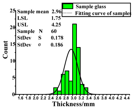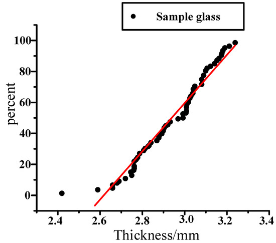X2 represents the thickness of the glass. The manufacturing of automobile glass is extremely complicated and must conform to certain standards. We take a group of 60 glass samples to test, and measure the thickness of automobile glass. Minitab was used to create statistics and draw the scatter diagram shown in Figure 18. It can be seen from the figure that the thickness of the glass is basically distributed around the red straight line. This indicates that the thickness of the glass basically conforms to the normal distribution. The graph after statistical analysis with Minitab is shown in Figure 18.