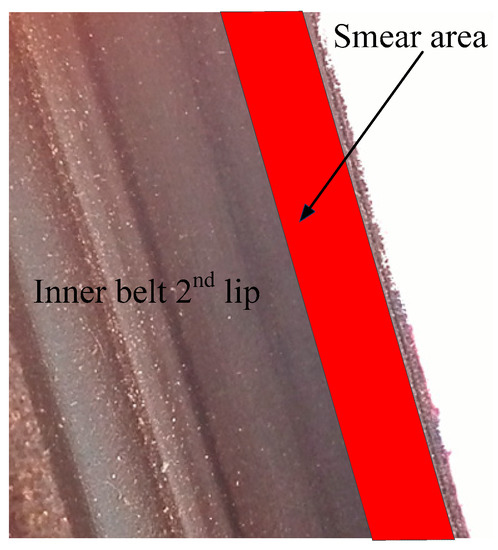 For vehicles delivered from the factory, the coating MR3-800 can be applied on the second lip of the inner belt. MR3-800 is shown in Figure 6. MR3-800 has a very good effect on reducing friction, and can effectively reduce the friction coefficient. The red area of Figure 24 is the area where the coating MR3-800 should be evenly applied. There was an S&R problem in the inner belt, which was verified by experiments after MR3-800 coating. The effect of this method is tested in the follow-up experiments. The repeated experiments on 62 automobiles show that the effect of this method is excellent. The tracking investigation on the follow-up vehicles shows that the effect can be maintained for about three months.