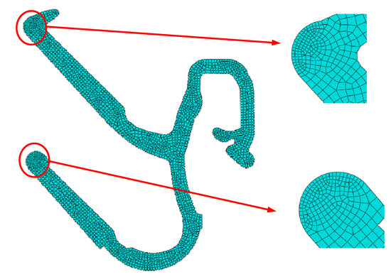 Because the first and second lips of the inner belt are in contact with the glass, the mesh should be divided carefully. The number of the first and second lips should not be less than ten, which is able to meet the requirements of accuracy. The mesh is shown in Figure 28.