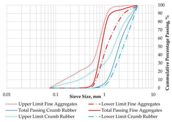 Scrap tires are one of the world’s largest solid wastes and more than 500 million units of waste tires are deposited each year before any type of treatment [1]. In Malaysia, the amount of annually produced scrap tires is in the range of 8.2 million tons, and about 60% of the scrap tires are deposited through unknown channels [2,3]. Most of these scrap tires are generally substantial, bulky and occupy unnecessary space in landfills. The accumulation of scrap tires in abandoned places is a perfect area for a breeding floor for mosquitoes and pests, which, in turn, can be deadly to humans. Additionally, scrap tires are also known to be a non-biodegradable item [4,5]. One solution to counteract this environmental problem is by incorporating crumb rubber (CR) from scrap tires into the production of construction and building materials, such as concrete [6]. CR is defined as the end product of rubber that has been recycled from vehicle tires [7].