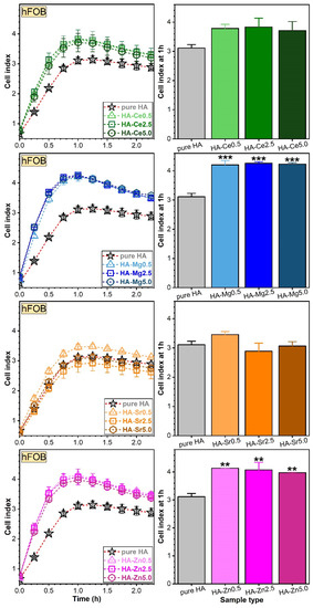 The in vitro cytocompatibility experiments of the pure and substituted HA NPs were performed in accordance with the specifications of the ISO 10993-5:2009 standard: “Biological evaluation of medical devices—Part 5: Tests for in vitro cytotoxicity”.