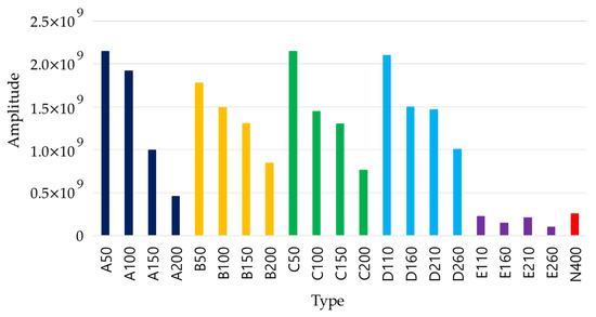 - In the IE spectra of A, B, C, and D with N400 and duct, ft was in the order of A > C > B > D, and there was a difference in the shift depending on the degree of grouting and the depth of the defect. The largest shift occurred in the intermediate defect (D), which is considered to be because the elastic wave propagating into the duct was shifted once more through the middle delamination defect, and the movement distance increased. However, this seems difficult to quantify, as the spectrum may change depending on the test conditions and physical properties of concrete.