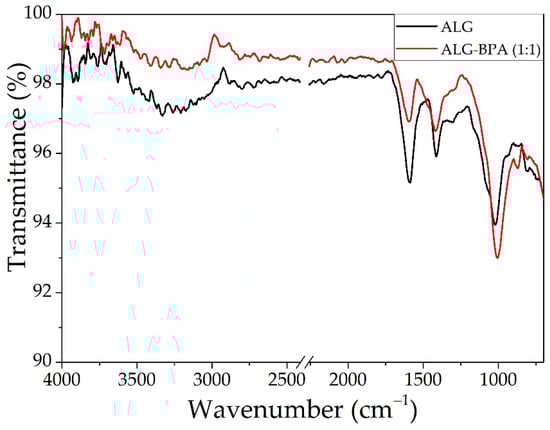 The ATR-FTIR analysis for ALG and ALG–BPA (1:1) microbeads.