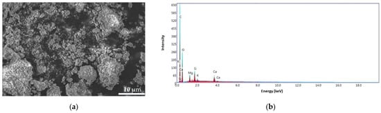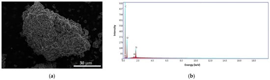 SEM images for ALG microbeads at 8000× (a) and the EDS pattern (b).