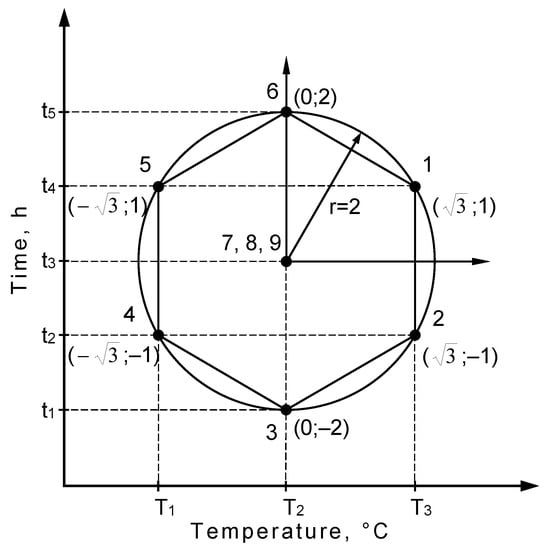 Rotatable plans assume a constant value of the model inaccuracy for all points lying in the space of input quantities. The measure of a point location in the space is radius r of a sphere concentric with the examined factors’ axle arrangement. Moreover, the appropriate number of measurements in the program centre must be maintained [].