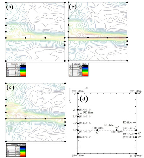 - The minimum ND texture density, the equal density of {111} <110> texture and {111} <112> texture;