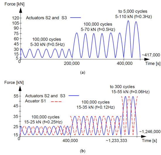 | Beam | Range I [kN] | Frequency I f [Hz] | Range II [kN] | Frequency II f [Hz] | Range III [kN] | Frequency III f [Hz] |