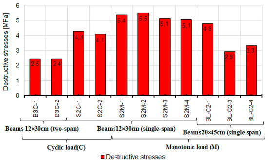 - the loading program, static scheme, and the dimensions of the beam cross-section affect the experimental shear capacity of the reinforced concrete beam support zone,