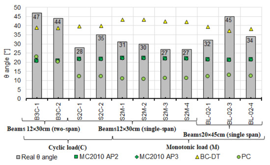 - the ctg θ value used in some models does not result from the inclination angle θ of the compressed concrete diagonals and can be used as an effective parameter for adjusting the shear design values to fit the experimental results (e.g., Model Code 2010 approximations 2 and 3 [3], Bentz and Collins [52] and Hong-Gun Park, Kyoung-Kyu Choi model) [54,55,56],