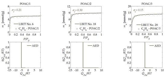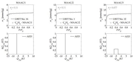 The benzene adsorption isotherms and the results of the identification of the adsorption systems via the LBET method, and adsorption energy distributions (AEDs) obtained for the MAAC/R active carbons, which were derived from mahogany wood.