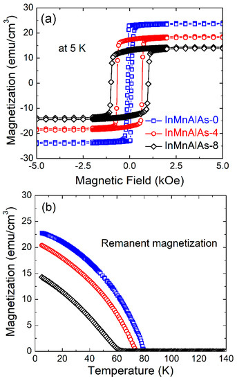 - Rushforth, A.W.; Farley, N.R.S.; Campion, R.P.; Edmonds, K.W.; Staddon, C.R.; Foxon, C.T.; Gallagher, B.L.; Yu, K.M. Compositional dependence of ferromagnetism in (Al,Ga,Mn)As magnetic semiconductors. Phys. Rev. B 2008, 78, 085209. [Google Scholar] [CrossRef]