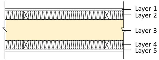 According to the sound insulation simulation model formula, the main parameter that affects sound insulation performance is material characteristics. The thickness, density, Young’s modulus, and Poisson’s ratio of the material were all necessary information. Furthermore, we needed to know the thickness, density, and flow resistance of the plate of the filling materials, as shown in Table 1.