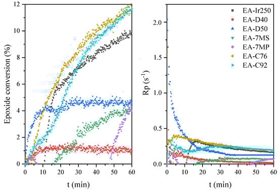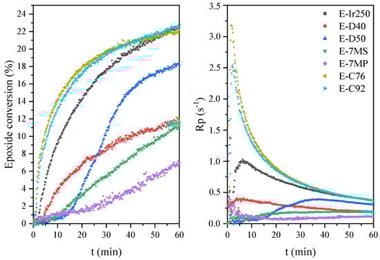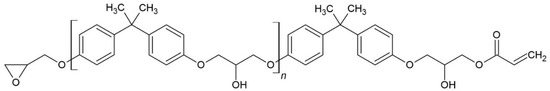 - Bednarczyk, P.; Irska, I.; Gziut, K.; Ossowicz-Rupniewska, P. Novel Multifunctional Epoxy (Meth)Acrylate Resins and Coatings Preparation via Cationic and Free-Radical Photopolymerization. Polymers 2021, 13, 1718. [Google Scholar] [CrossRef] [PubMed]