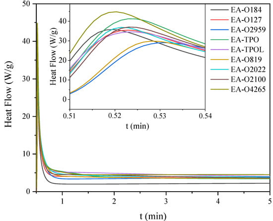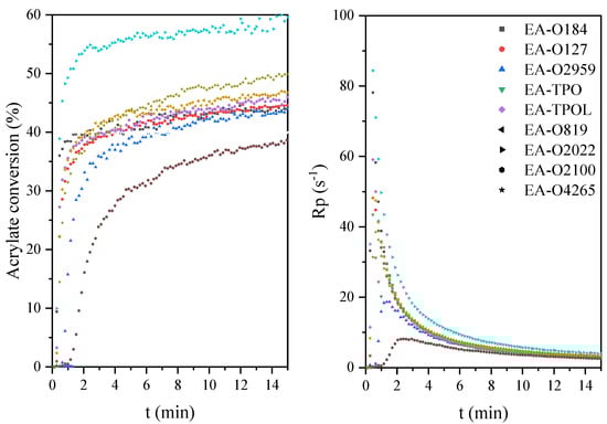 - Decker, C. Kinetic Study and New Applications of UV Radiation Curing. Macromol. Rapid Commun. 2002, 23, 1067–1093. [Google Scholar] [CrossRef]