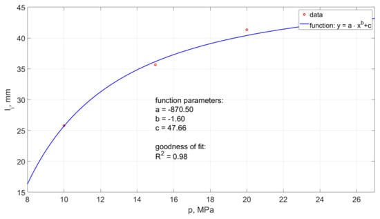 Moreover, the frequency of pulsation formation in the water stream decreased with the increase of the nominal water pressure. A graphic illustration of the course of changes in the pulsation frequency of the water stream is shown in Figure 21.