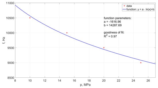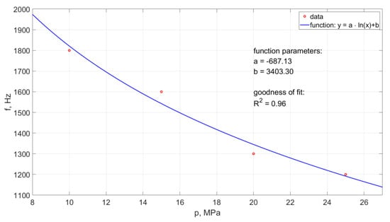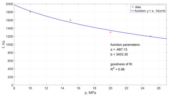 Based on this relationship (with the accuracy of matching defined by a high regression coefficient R2 = 0.96), it is possible to determine the frequency of occurrence of hydrodynamic pulses at different pressures within the studied range of their variability.