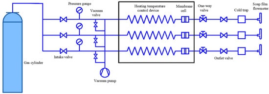 Schematic diagram of experimental devices for permeation measurement of single gas.