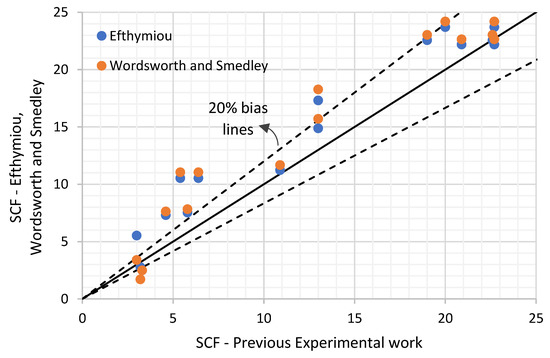 There is generally a good agreement between all the methods used to estimate the SCFs, where the Efthymiou equations form an upper bound.