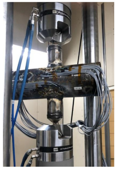 The distribution of stresses at the brace-to-chord intersection is measured by strain gauges perpendicular (HBM, Darmstadt, Germany) to the weld toe for all the specimens under tensile axial loading. Test Specimens setup are presented in