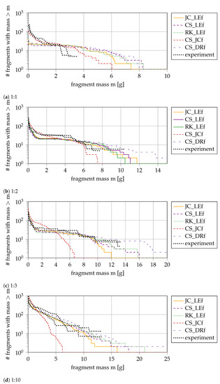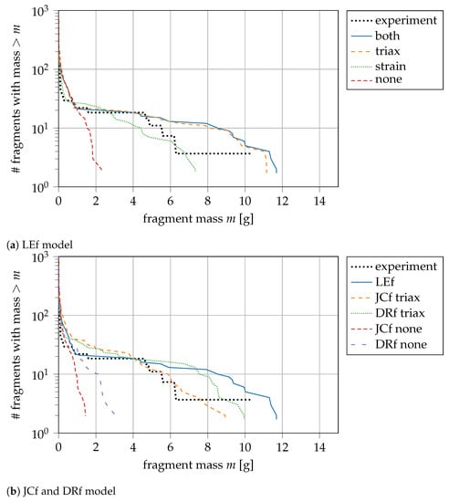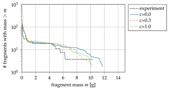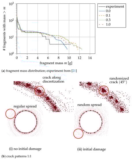 - Vocialta, M.; Molinari, J.F. Influence of internal impacts between fragments in dynamic brittle tensile fragmentation. Int. J. Solids Struct. 2015, 58, 247–256. [Google Scholar] [CrossRef]