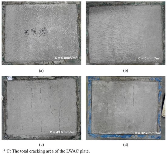 Cracking of LWAC with different nano-SiO2 dosages: (a) fly ash-clay ceramsite, 0 wt.% nano-SiO2; (b) fly ash-clay ceramsite, 3 wt.% nano-SiO2; (c) shale ceramsite, 0 wt.% nano-SiO2; and (d) shale ceramsite, 3 wt.% NS, (Chinese words in (a) is samples notation and it is not essential for this paper) reprinted with permission from ref. [] Copyright 2018, Elsevier.