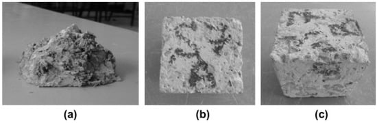Lightweight concrete (LWC), according to the EN 206-1 [], is defined as having a density below 2000 kg/m3. LWCs can be divided into six density classes, from 800 kg/m3 with a grading of 200 kg upwards []. The use of lightweight aggregates for the production of concrete has many advantages [,,]. Some of these can particularly include a reduced dead load, high thermal efficiency, and enhanced resistance against fire []. There are many methods of producing lightweight concrete (LWC), one of which is based on omitting the fine portion of the total concrete aggregate. Another approach is to use chemical admixtures to produce stable air bubbles in the cement matrix and mechanical foaming. This type of concrete is known as aerated, cellular, or gas concrete. The most common method of LWC production is by using lightweight aggregates [].