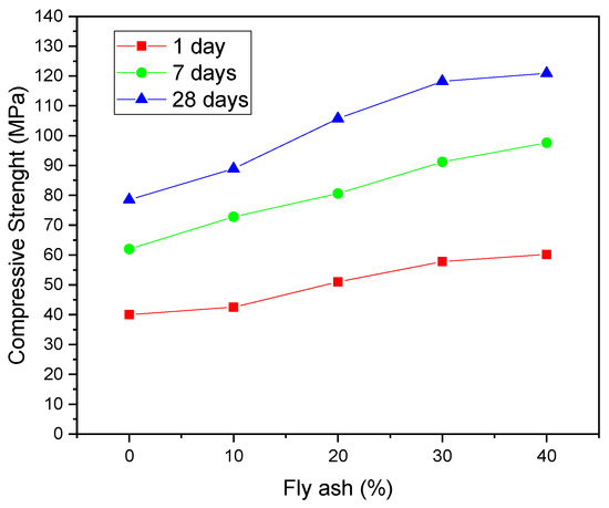 Influence of fly ash content on the compressive strength of ultrahigh performance concrete [105].