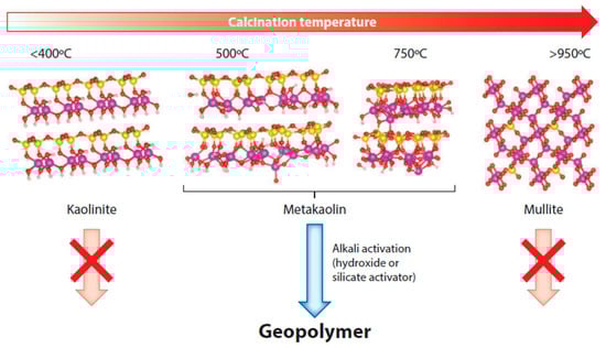 - Buchwald, A.; Hohmann, M.; Posern, K.; Brendler, E. The Suitability of Thermally Activated Illite/Smectite Clay as Raw Material for Geopolymer Binders. Appl. Clay Sci. 2009, 46, 300–304. [Google Scholar] [CrossRef]