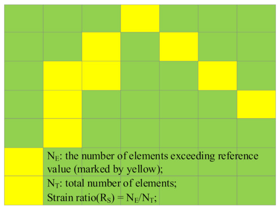 Figure 13 shows that when the strain reference values are 0.0005, 0.001 and 0.0015, the trend of the experimental curves is the same as the simulated one. The upward of curve means the number of crack elements increases, and the downward means decreases.