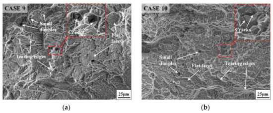 Fracture morphologies of annealed samples at room temperature tensile: (a) case 9; (b) case 10.