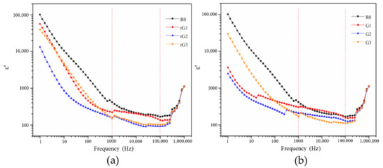 Dielectric constant of the samples with rGO (a) and GO (b) addition.