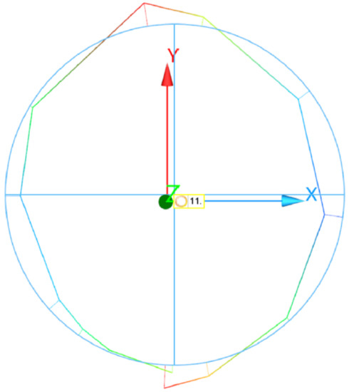 The method is based on determination of the center circle, in which the sum of the squares of the deviations from the specified profile is the smallest. The output value of the measurement is the plotted body of the “circle” and the average value of the deviation from the center circle.