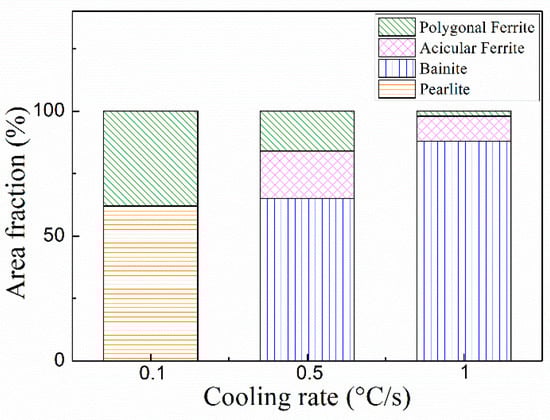 Area fraction of microstructural constituent at different cooling rates.