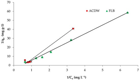 where b and qmax are calculated from slope and intercept of the linear equation, respectively.