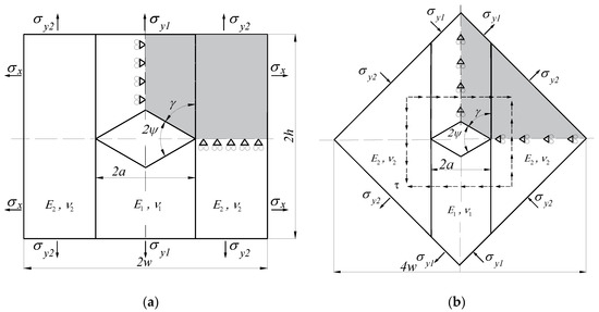 Currently, various types of composites are widely used, which, compared to traditional construction materials, are characterised by greater strength and at the same time lower specific weight. Composites are not without some drawbacks. They often contain various material defects (voids, inclusions) causing the formation of local stress fields with large gradients. This results in the initiation of new cracks or the propagation of the existing ones. In the case where the stress concentrator is located inside only one material phase, the failure criteria commonly used for isotropic materials can be used to predict fracture [1,2,3,4]. In the opposite situation, e.g., when the defect is located or started at the surface of the connection of different elastic materials, it is necessary to develop new, or modify already existing, material fracture criteria. Suitable fracture hypotheses can be obtained using the qualitative and quantitative description of singular stress fields occurring in close proximity to the tip of the defect under consideration.