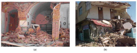 A typical adobe house is a single-story structure with foundations made of medium to large stones and adobe mortar in the middle. The roof is usually made of wooden beams or bamboo, and it is covered with corrugated metal plates, clay bricks, or thatch. In general, the materials used are determined by the region’s economy. As shown in Table 2, adobe structures are prone to collapse during an earthquake, resulting in significant damage and casualties. Furthermore, it is estimated that masonry buildings account for more than 70% of the world’s building inventory [14] and that building collapses were caused by more than 75% of earthquakes in the last century [15].