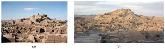 - Langenbach, R. Performance of the Earthen Arg-e-Bam (Bam Citadel) during the 2003 Bam, Iran, Earthquake. Earthq. Spectra 2005, 21, 345–374. [Google Scholar] [CrossRef]