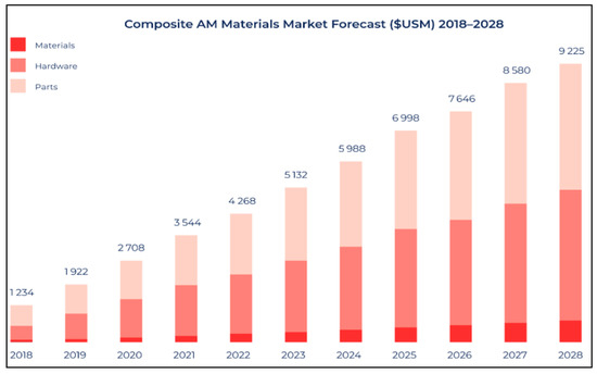 - 3D Printing Media Network, Composites. Available online: https://www.3dprintingmedia.network/composites-additive-manufacturing-market-2028/ (accessed on 22 June 2021).