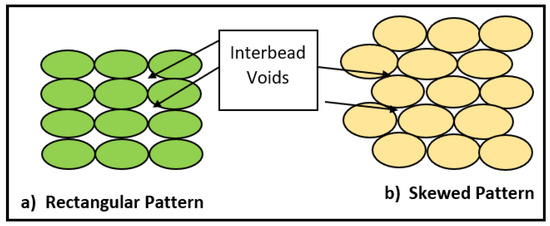 Schematic illustration of interbead void formation under different printing strategies (a) Rectangular pattern (b) Skewed pattern (redrawn from [78]).