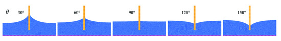 - Bao, Y.; Li, L.; Shen, L. Modified smoothed particle hydrodynamics approach for modelling dynamic contact angle hysteresis. Acta Mech. Sin. 2019, 35, 472–485. [Google Scholar] [CrossRef]