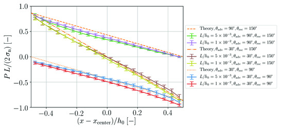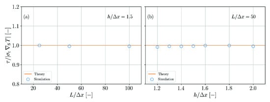 Different approaches exist in order to evaluate a suitable surface delta function. Equations (19) and (20) are two possibilities for this purpose. We consider using Equation (19) to be a consistent choice, because this way the surface normal (Equation (18)) and the surface delta function are derived from the same quantity, namely . However, as other authors [14,20,23] use Equation (20) to obtain the surface delta function, we compare these two approaches in the following.