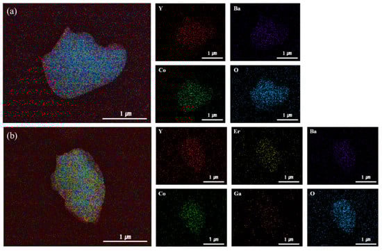 On the other hand, Co-containing swedenborgite-structured YBaCo4O7+δ (YBC) materials with significantly large oxygen-storage capacity are considered to be promising catalysts in solid oxide fuel cells (SOFC) working at intermediate temperatures [17,18]. It is well known that the swedenborgite structure (space group: P63mc) of YBC with two layers of CoO4 tetrahedral coordinates suffers from severe phase instability by thermal decomposition at 600–800 °C due to the preference of Co ions for octahedral coordination, which makes its application in SOFC difficult [19,20]. Manthiram et al. reported that YBC doped with the optimum content of Ga, which substitutes for Co sites, can effectively overcome this phase instability at high temperatures of 600–800 °C [21]. Our recent work reported that Er and Ga co-doped YBC oxide (YEBCG) showed excellent phase stability compared to YBC, presenting long-term durability under reversible protonic ceramic cell conditions [22]. Meanwhile, there are a few reports adopting Er or Ga as dopants for cathode-active materials in LIBs. While Er-doped LiFePO4 and LiNi0.5Mn1.5O4 showed improved cycling stability [23,24], Ga-doped layered LiN0.6Co0.2Mn0.2O2 presented enhanced electrochemical performance and thermal stability, which is in line with the Manthiram group’s result based on the YBC material related to the improved phase stability at high temperatures [21,25].