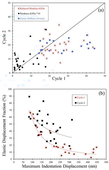 - Domnich, V.; Gogotsi, Y.; Dub, S. Effect of phase transformations on the shape of the unloading curve in the nanoindentation of silicon. Appl. Phys. Lett. 2000, 76, 2214–2216. [Google Scholar] [CrossRef]
