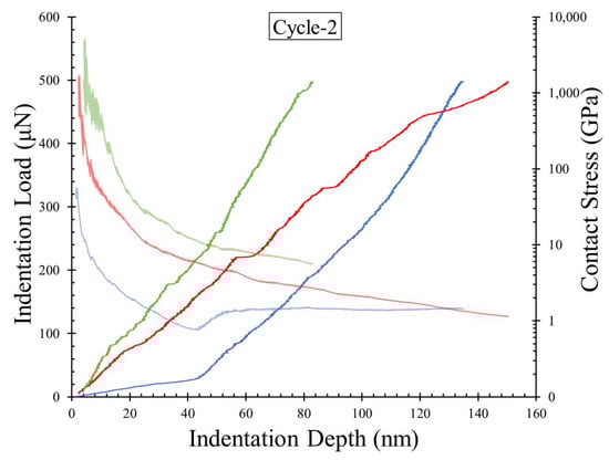 - Oliver, D.; Lawn, B.; Cook, R.; Reitsma, M.; Bradby, J.; Williams, J.; Munroe, P. Giant pop-ins in nanoindented silicon and germanium caused by lateral cracking. J. Mater. Res. 2008, 23, 297–301. [Google Scholar] [CrossRef] [Green Version]