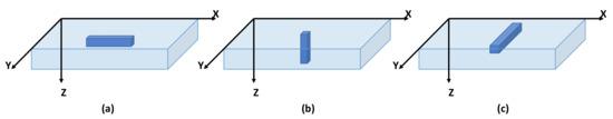 Orientation of compression samples in the printing manufacturing domain: (a) X, (b) Z and (c) Y.